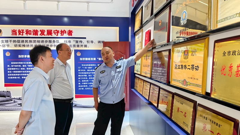 慰問組一行來到磨頭派出所,在民警的引導(dǎo)下,首先參觀了派出所文化長(zhǎng)廊與榮譽(yù)展廳,詳細(xì)了解了磨頭派出所歷史沿革與取得榮譽(yù)。